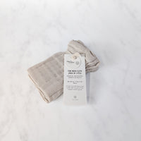 Made from three layers of light, fast-drying organic cotton gauze, these fine washcloths are as practical as they are beautiful. Each set of three helps keep hands and body clean while adding an elegant touch beside the sink or tub. Thoughtfully designed for daily use, they support organic, sustainable textiles and responsible business practices.