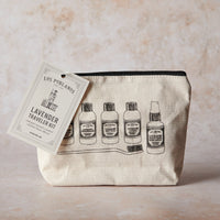 Designed for those on the go, this set contains travel size bottles of Los Poblanos signature Lavender Shampoo, Lavender Conditioner, Lavender Body Wash, Lavender Lotion and Lavender Hand Sanitizer Spray, all conveniently packaged in a 100% cotton bag.
