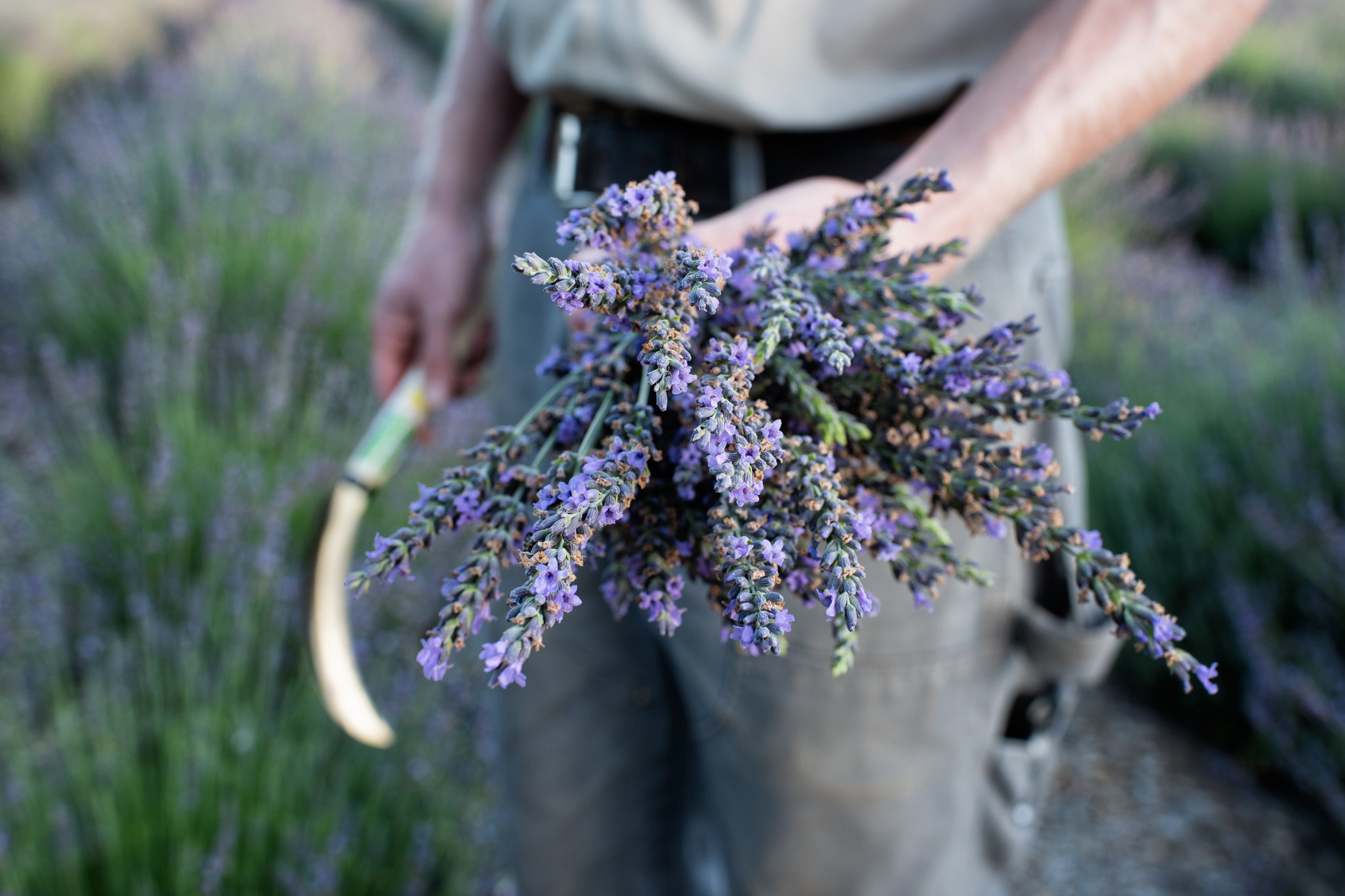 Each summer, we harvest the lavender by hand when the flowers are half to three-quarters open, typically in mid-July, capturing the peak essential oil content. The oil and hydrosol are then extracted on the farm through a traditional steam distillation process, ensuring absolute purity. The resulting oil and hydrosol are crafted into our artisan lavender products and inn amenities.